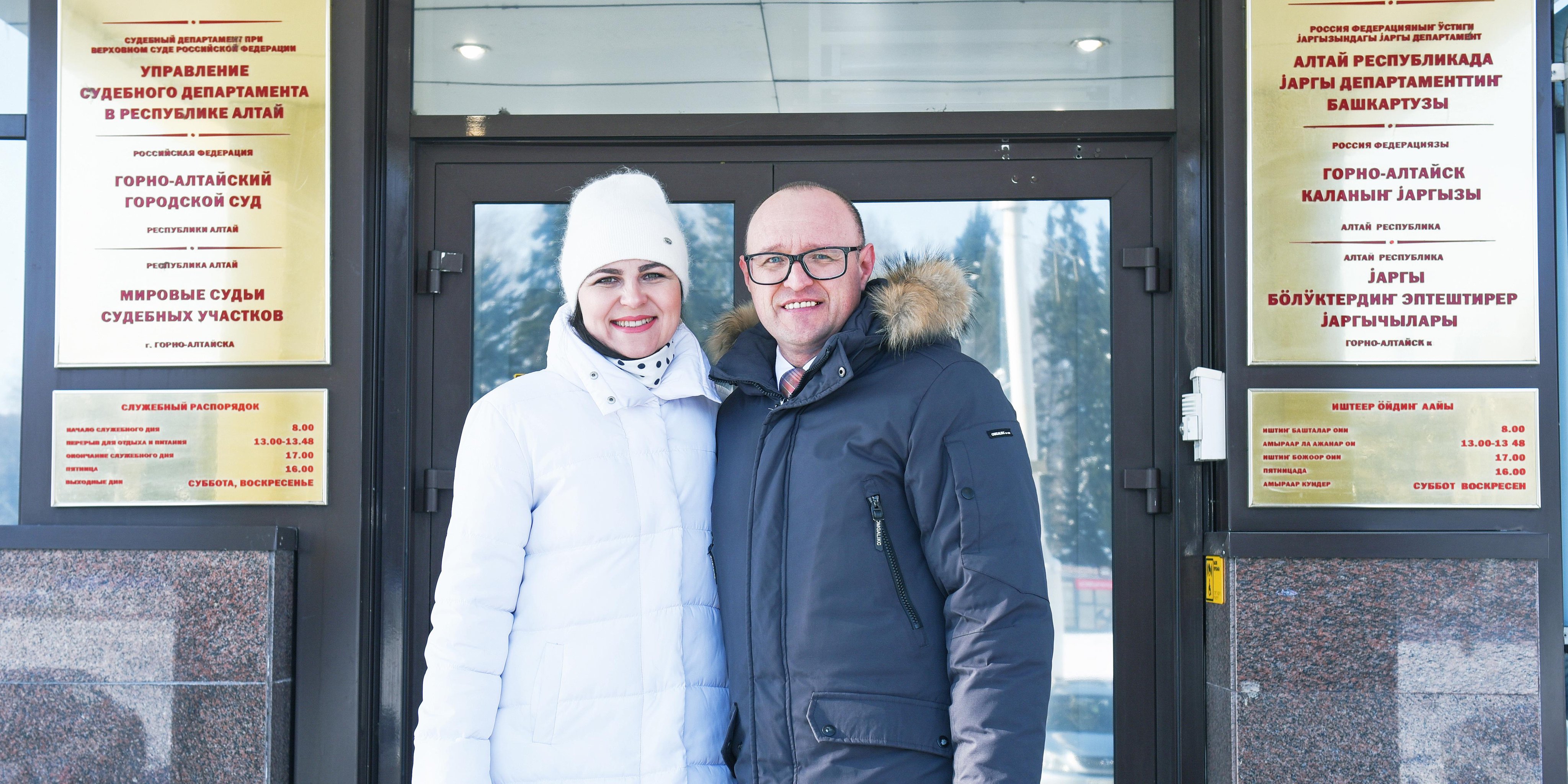 Александр и Юлия Калистратовы у здания суда. Февраль 2023 г.