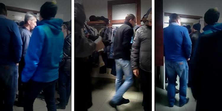 No meio do culto, policiais entraram no corredor. O vídeo mostra que dois estranhos (veja foto) saem rapidamente do prédio, e livros proibidos permanecem em seus lugares, aos quais a polícia imediatamente presta atenção. Um terceiro desconhecido (foto à direita), supostamente sem relação com os outros dois, fica e dá explicações detalhadas à polícia, com base nas quais é elaborado um protocolo, supostamente em nome do paroquiano.