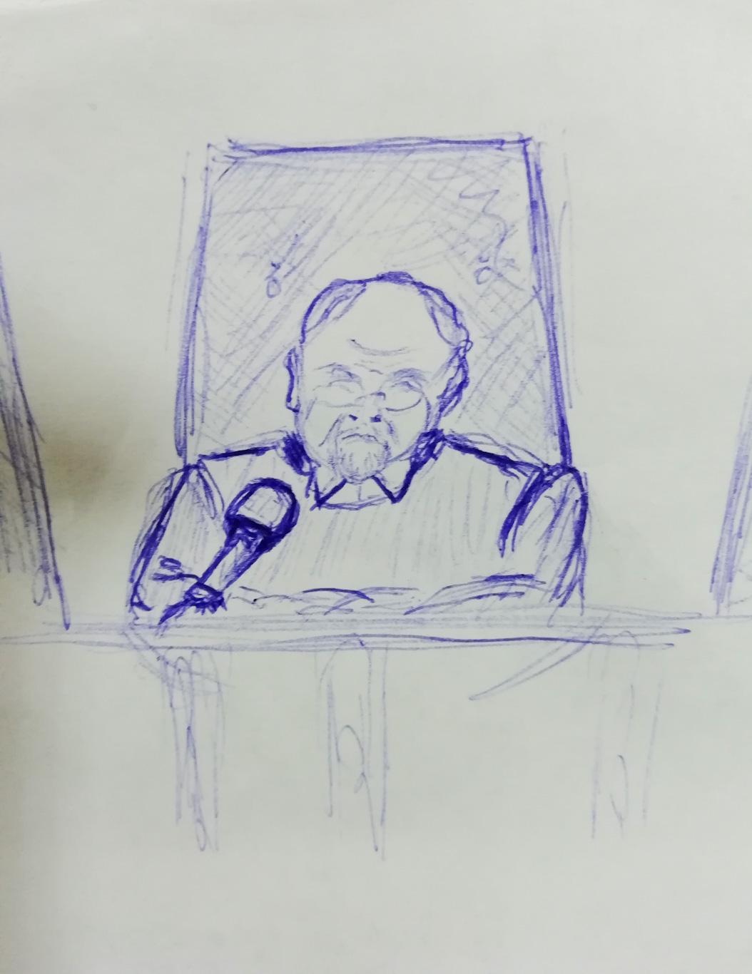Der Anwalt äußert seine Einwände gegen das Vorgehen des Richters. Er weist darauf hin, dass die Art der Fragen, die der Richter dem Sachverständigen stellte, auf die gebildete Position zu dem Fall, die anklagende Voreingenommenheit des Richters und das Interesse an einem bestimmten Ausgang des Falles hindeutet.