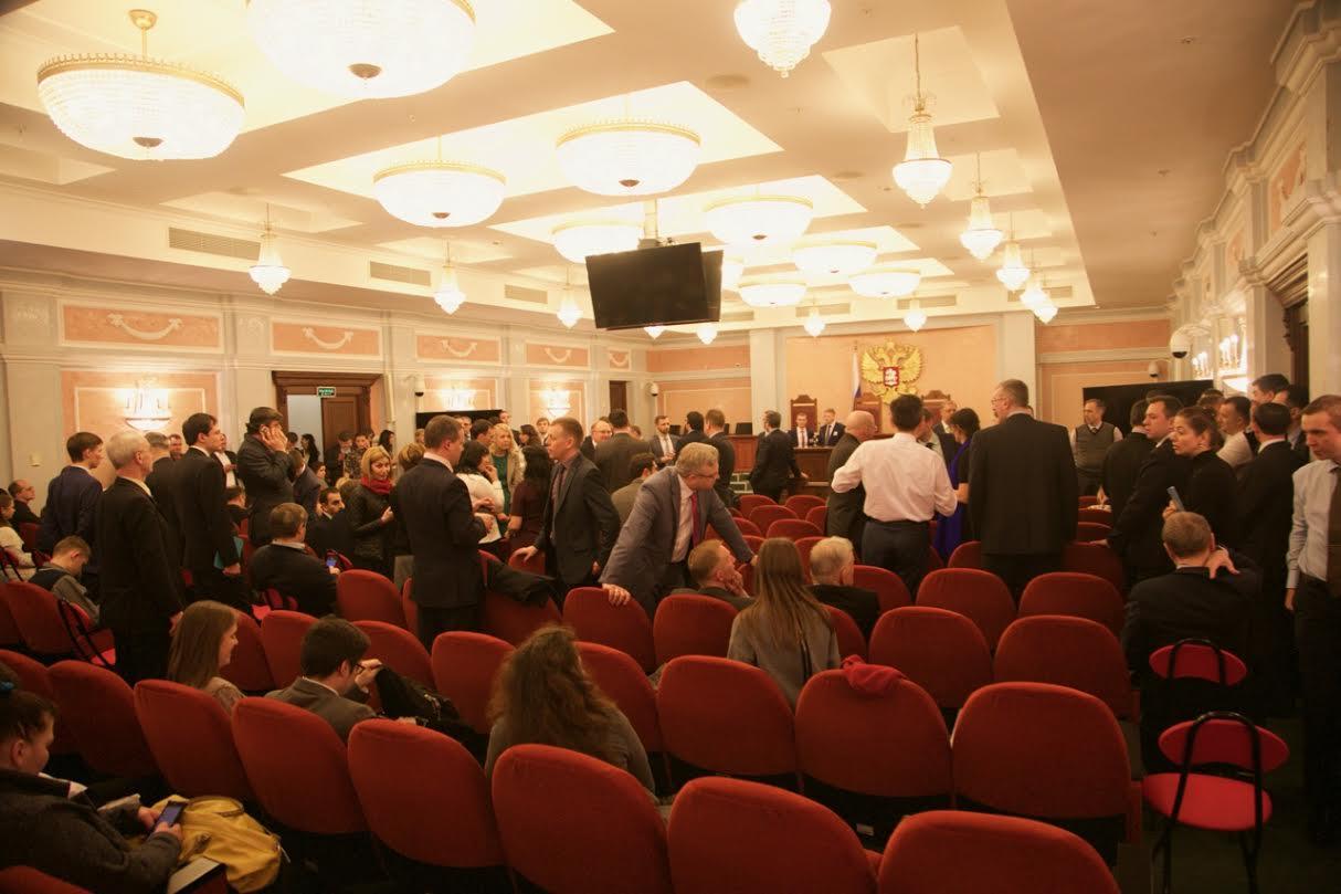 | 10:58 | O grande e belo tribunal está lotado. Mais de 200 pessoas comparecem, incluindo numerosos jornalistas, representantes de organizações públicas, embaixadas estrangeiras. Audição começou às 10h30. Pouco menos de 250 pessoas permaneceram do lado de fora para aguardar os resultados da audiência. Rua Povarskaya em Moscou está cheio de carros com antenas de TV transmissoras. Os eventos são filmados por vários Câmera. Os walkie-talkies da polícia transmitem periodicamente as mensagens "Tudo está calmo, sem incidentes". Em Representantes de embaixadas e organizações estrangeiras ouvem a tradução do processo em fones de ouvido. O caso está sendo ouvido pelo juiz Y. Ivanenko. Do lado do réu, "Centro Administrativo das Testemunhas de Jeová na Rússia", representam 6 pessoas, incluindo Vasiliy Kalin do comitê diretor e advogados. Representante Ministério da Justiça da Federação Russa — Svetlana Borisova. As objeções do réu foram anexadas ao caso, juntamente com anexos em 35 Volumes. O tribunal permitiu a fotografia e a gravação de vídeo apenas quando o ato final foi anunciado. No entanto, para gravação de áudio Não há obstáculos. Cerca de 40 representantes da mídia estão presentes no salão, eles ocupam as primeiras fileiras do salão. |