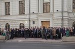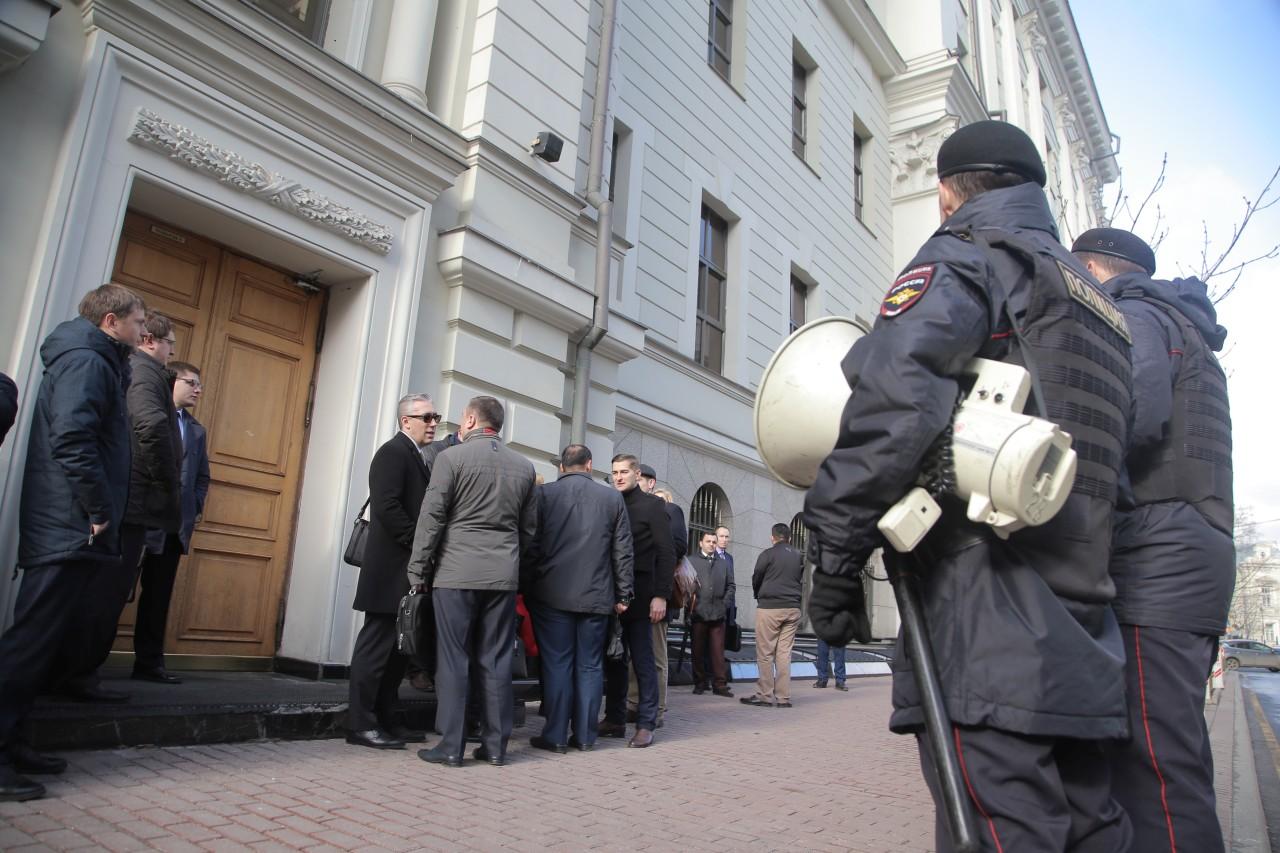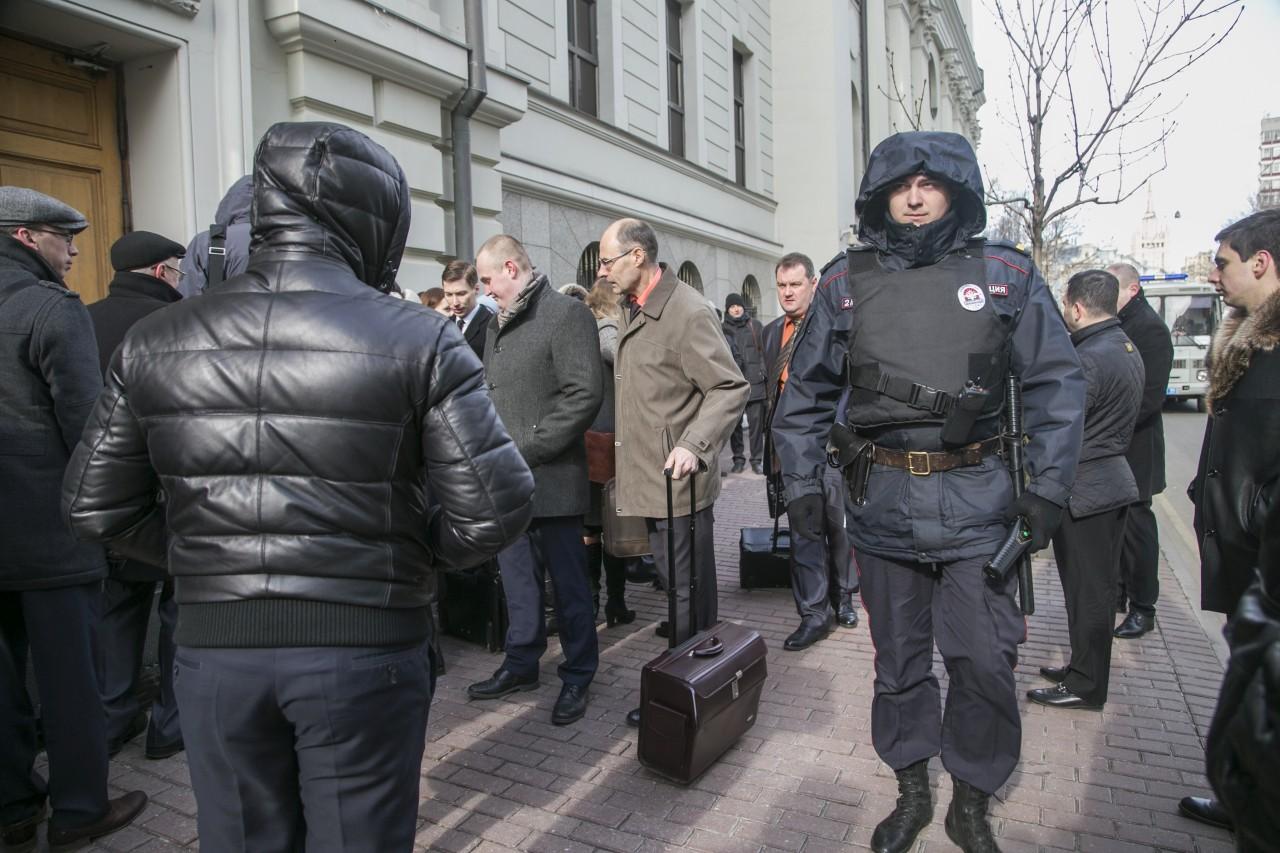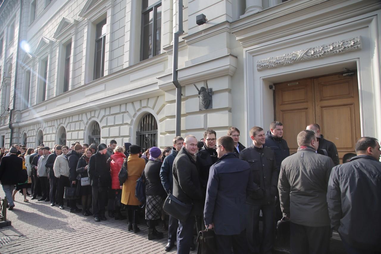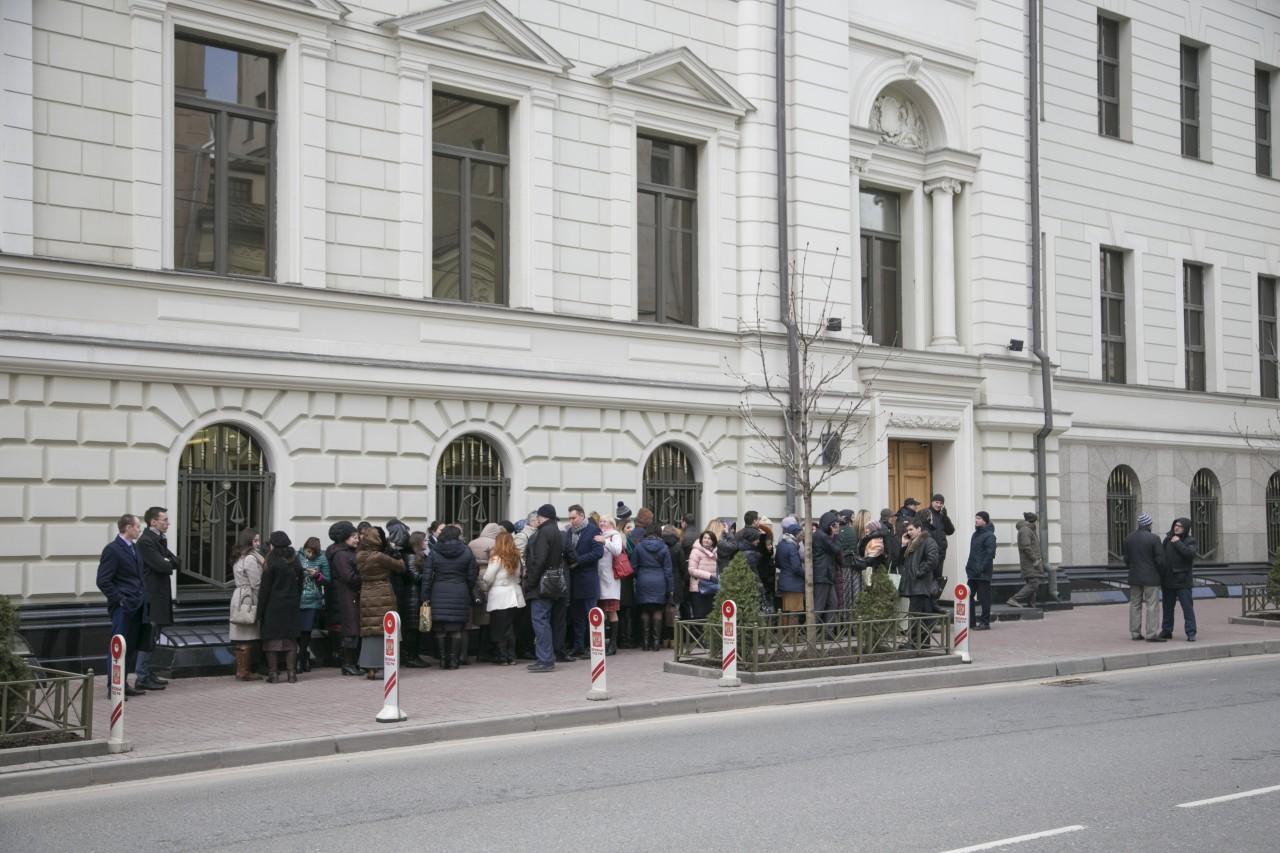 | 9:00 | A frente do prédio da Suprema Corte está mais lotada do que nunca. A fila começou a se formar à noite. Muito especialmente veio de diferentes cidades da Rússia. Como o clima em Moscou é frio, a maioria está vestida no inverno. De vez em quando, alguém trazia café e tortas para os que estavam na fila. Pessoal A polícia trabalha de forma profissional e coerente, garantindo a segurança dos envolvidos no julgamento. |